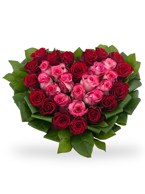 Cuore di rose rosse e rosa con verde decorativo: un elegante cuore di rose profumate per incantare una persona speciale. Per esprimere amore e passione, con consegna a domicilio in 24 ore.